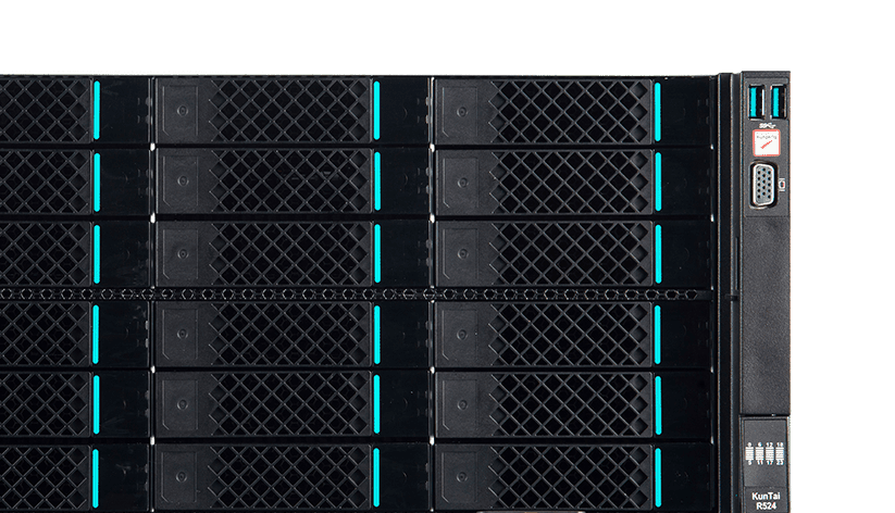 KunTai R524 存储型服务器是六合联盟数码基于鲲鹏处理器推出的新一代 ARM数据中心服务器。。。主要面向存储业务,,,,具有海量存储、、、、高性能、、、、低功耗以及易扩展的特点,,,适合为大数据分析、、、软件定义存 储等应用场景的工作负载进行髙效加速。。